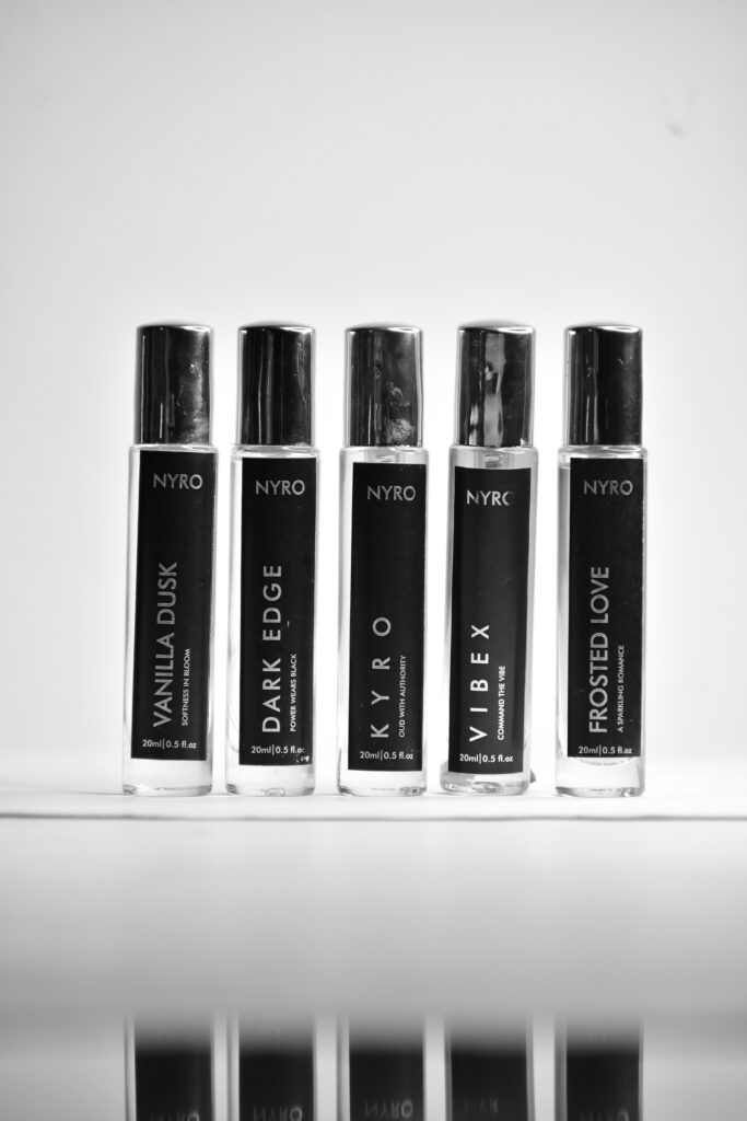 Each Nyro fragrance is handcrafted using premium, skin-safe ingredients sourced from around the world. Our scents are carefully balanced for long-lasting wear, distinct character, and an unforgettable trail. Whether you love soft, floral notes or bold, musky tones — we have something to match your mood.